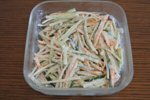 - 醤油、酒、生姜で下味をつけ、しばらく置いておく